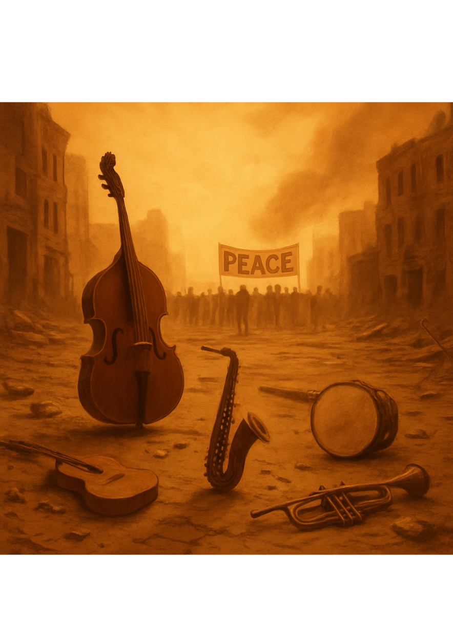 Comment l’on peut élaborer avec la simple volonté de consoler ou d’encourager les opprimés, victimes innocentes. S’adresser à distance à toutes celles et ceux qui se retrouvent par malheur coincés entre deux intérêts aveugles et brutaux, détruisant de trop nombreuses vies par leurs actions rarement inconsidérées, souvent intentionnées Un espace d’expression musicale renouvelé, où la plainte, le cri et la communion autour de ces questions nous offrira un moment de répit, ensemble, dans un appel à l’apaisement afin de résister debout à la nuit qui vient et qui nous couvrira si nous y consentons.
