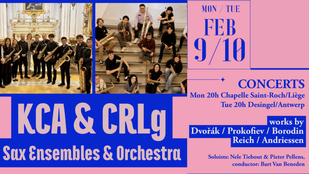 Les Conservatoires royaux de Liège et d’Anvers s’unissent pour un concert exceptionnel d’ensembles de saxophones le 9 janvier à la Chapelle Saint-Roch. Sous la direction de Nele Tiebout et Pieter Pallens, les musiciens revisiteront des chefs-d’œuvre de Dvořák, Prokofiev et Reich. Un rendez-vous musical unique à ne pas manquer, dans le cadre chaleureux d’une chapelle chauffée pour l’occasion.